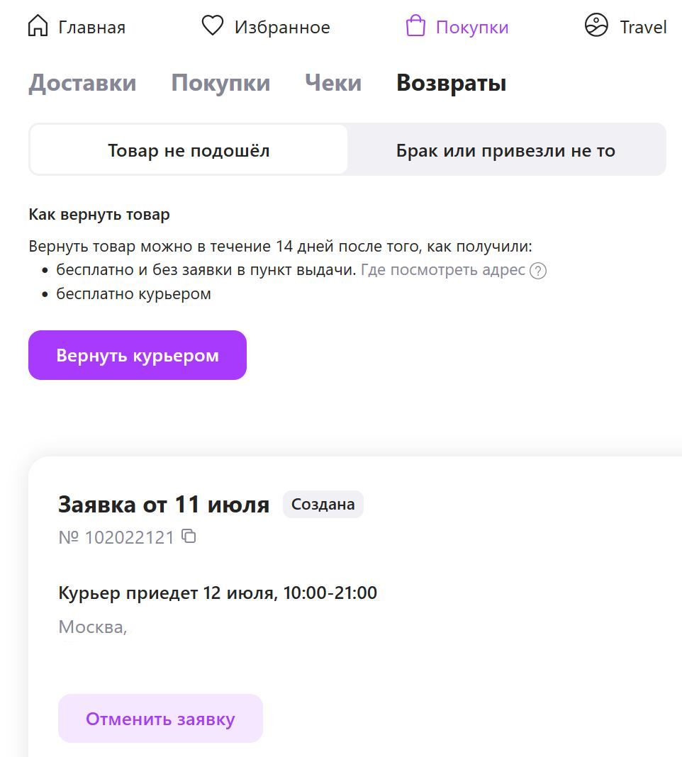 Прошлым летом у меня была неудачная попытка получить свой товар из пункта выдачи WB с помощью курьера. Курьер ехал ко мне два дня, а когда я отказалась его принять, то не могла получить этот товар самостоятельно из пункта выдачи, так как он был записан на курьера. Но это в прошлом.