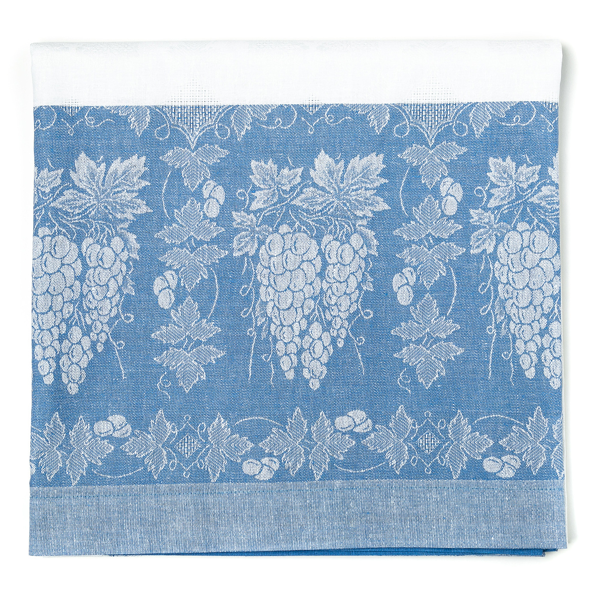 сейчас посмотрела более внимательно на скатерку с виноградом - там по белому центральному однотонному полотну Такая выделка ткани с узором и мережкой (на фото Озона ничего не видно((... я крут! я Очень крут! - купила суперскую вещь за 1499 р.