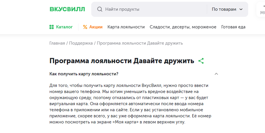 Объясните мне, пожалуйста, что такое карта лояльности у ВкусВилла и как её получают?