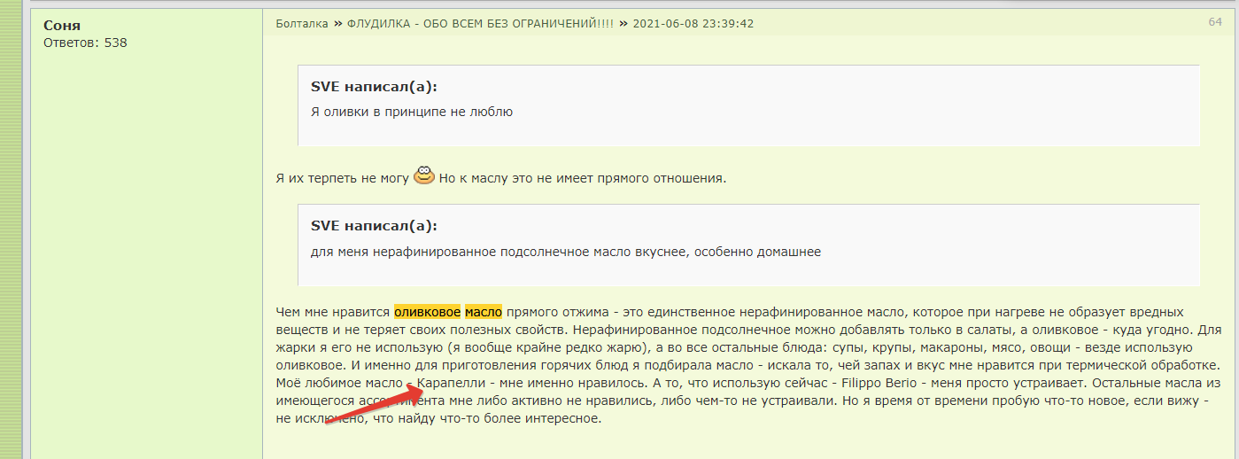 Да, она называла масло второе, я не запомнила его название, но вы запомнили, но покупает этого "филиппа", мы не единожды говорили о нём. Она даже где-то писала, какое именно, их не одно.